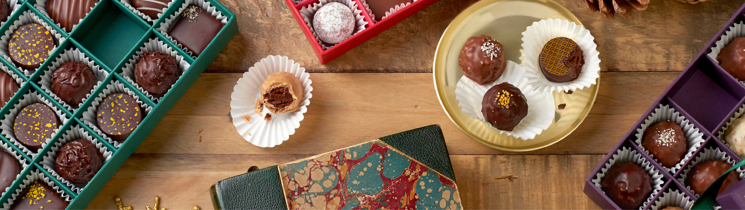 Our chocolate gift boxes are made with delicious chocolates from carefully selected partners in the UK, following recipes developed by our in-house chocolatiers to ensure they meet our standards of high quality and taste. Where possible, we work with small heritage businesses who craft our chocolates by hand.